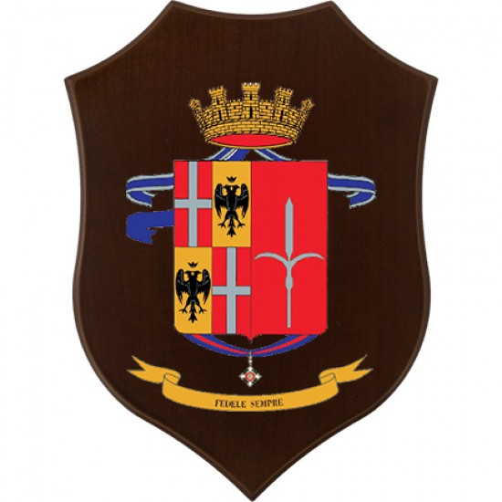 Crest montato su base lignea con placca metallica smaltata