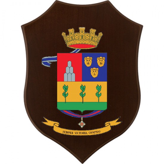 Crest montato su base lignea con placca metallica smaltata