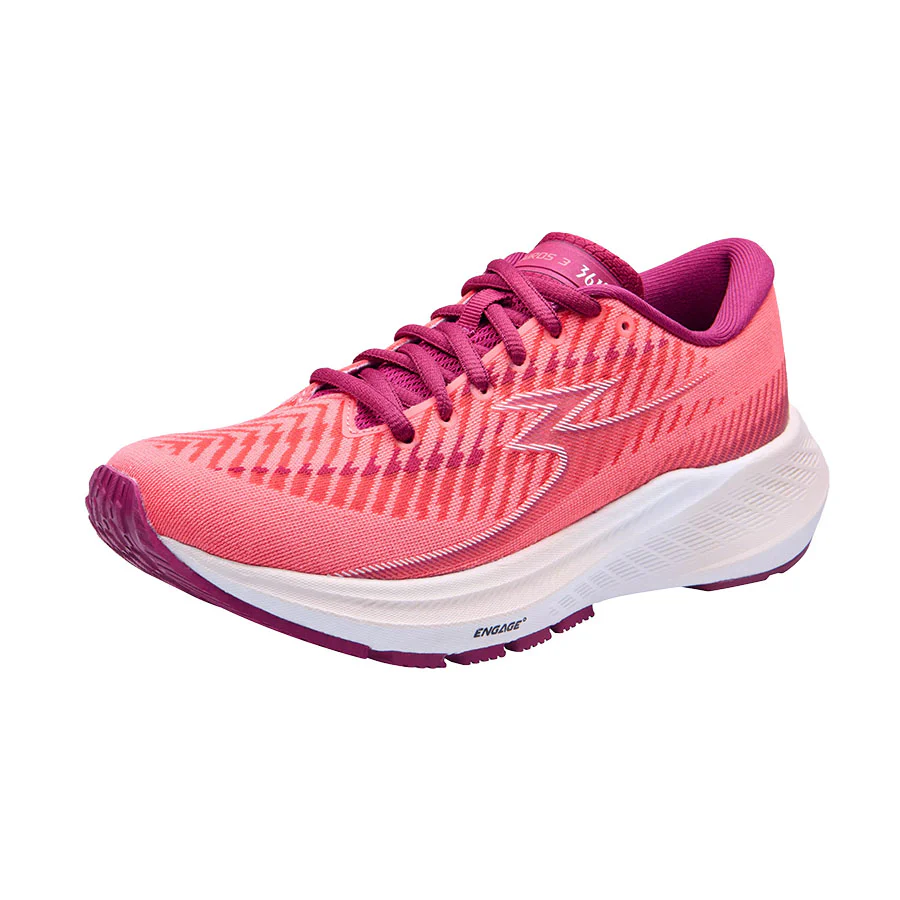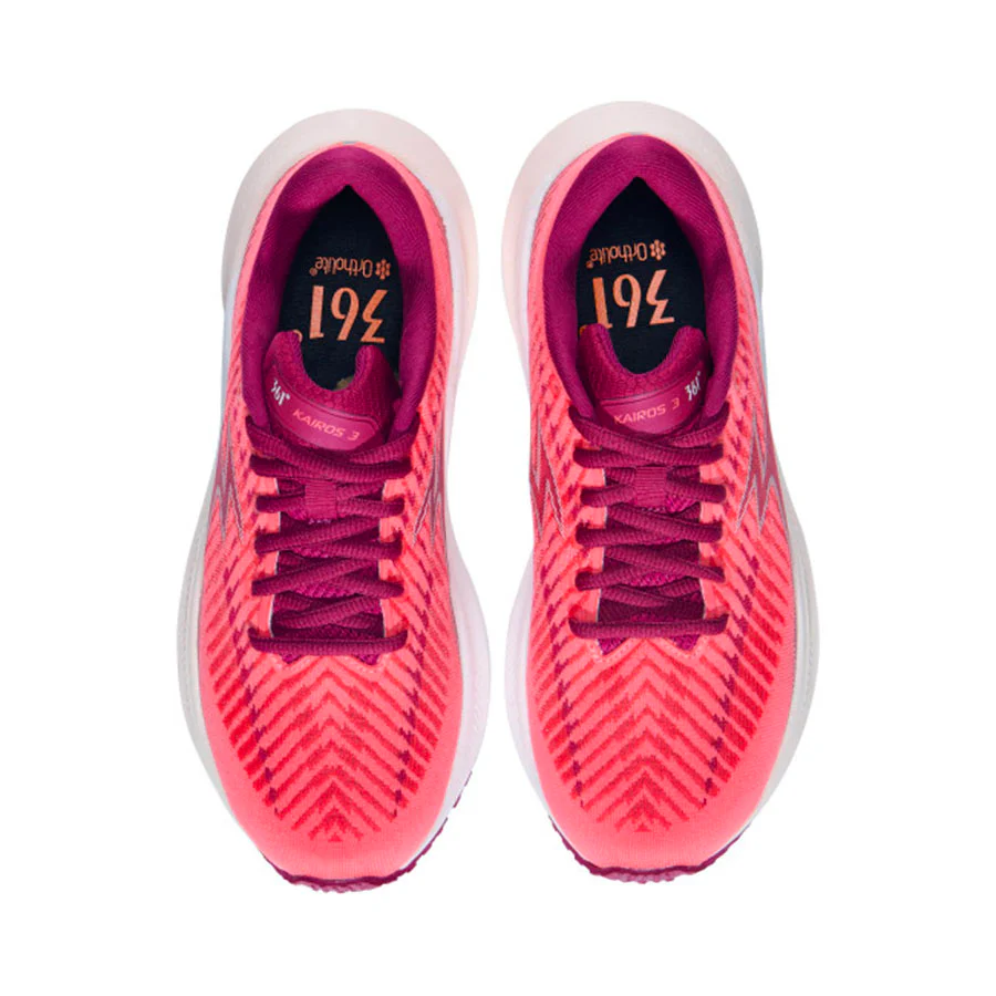La 361° Kairos 3 è indubbiamente il modello più conosciuto (e più premiato dalle riviste di settore!) di casa 361° e coniuga il giusto equilibrio tra ammortizzazione, reattività e moderata stabilità grazie all’intersuola in ENGAGE° Foam e QU!KFOAM e alla geometria rivisitata, con un allargamento all’altezza del mesopiede.
