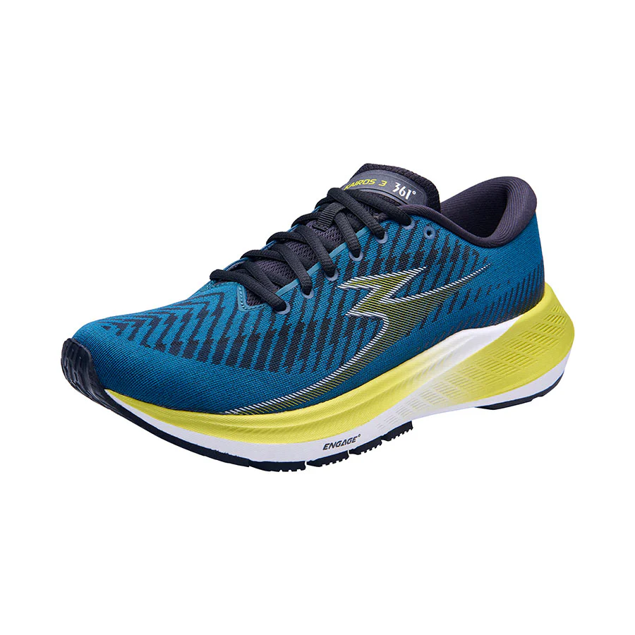 La 361° Kairos 3 è indubbiamente il modello più conosciuto (e più premiato dalle riviste di settore!) di casa 361° e coniuga il giusto equilibrio tra ammortizzazione, reattività e moderata stabilità grazie all’intersuola in ENGAGE° Foam e QU!KFOAM e alla geometria rivisitata, con un allargamento all’altezza del mesopiede.