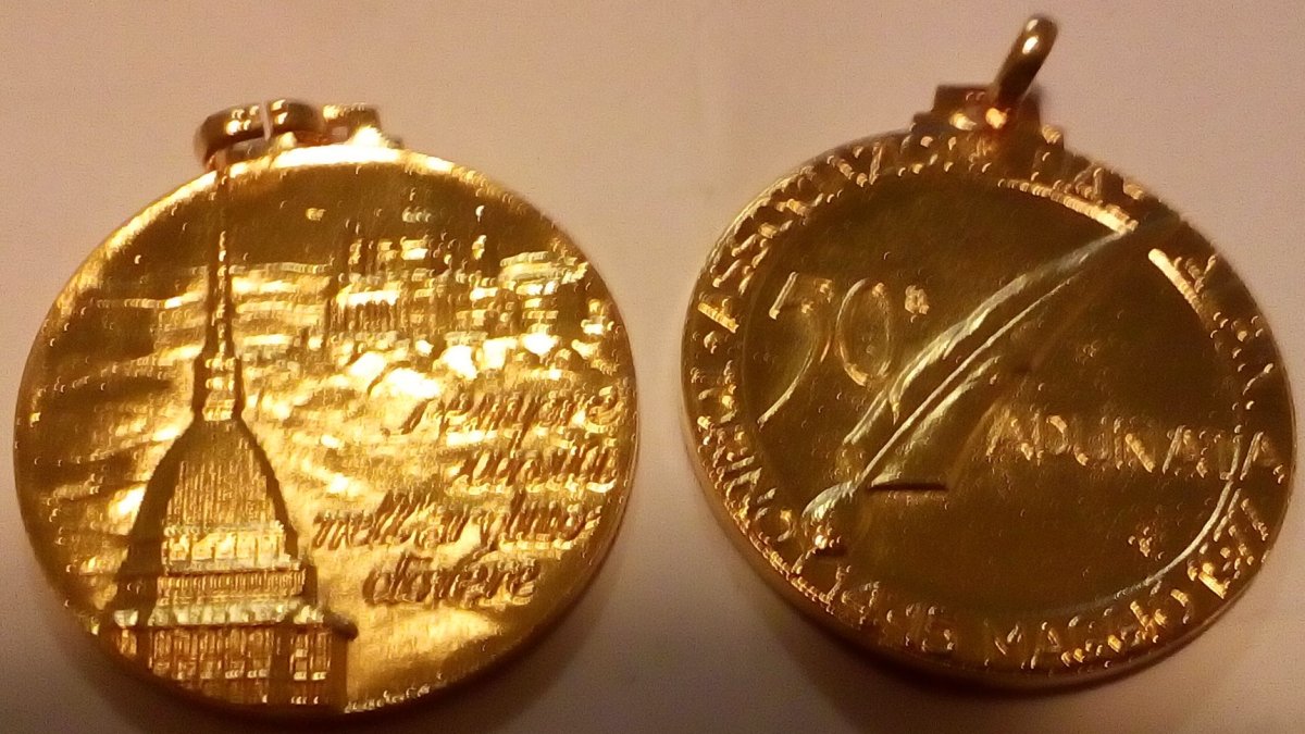 riproduzione della medaglia della 50a adunata nazionale alpini, tenutasi a Torino nel maggio 1977