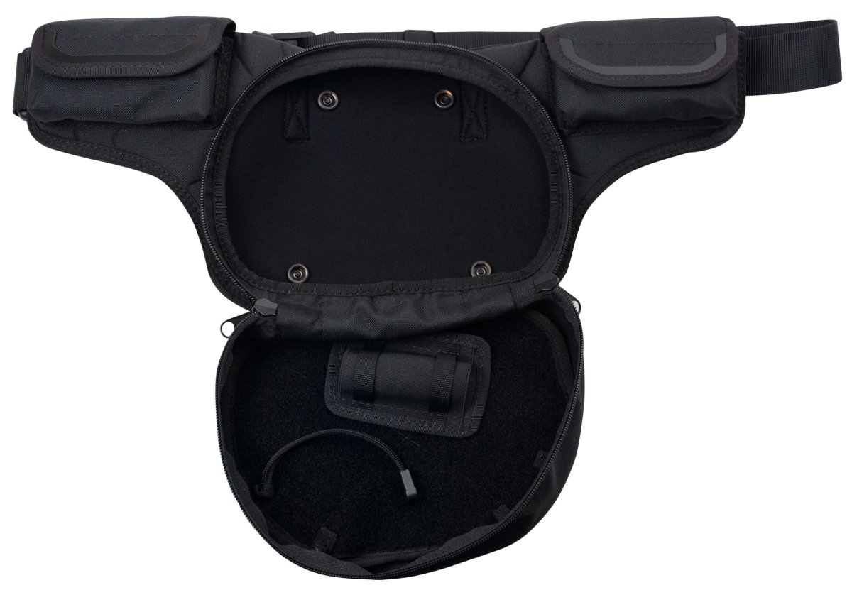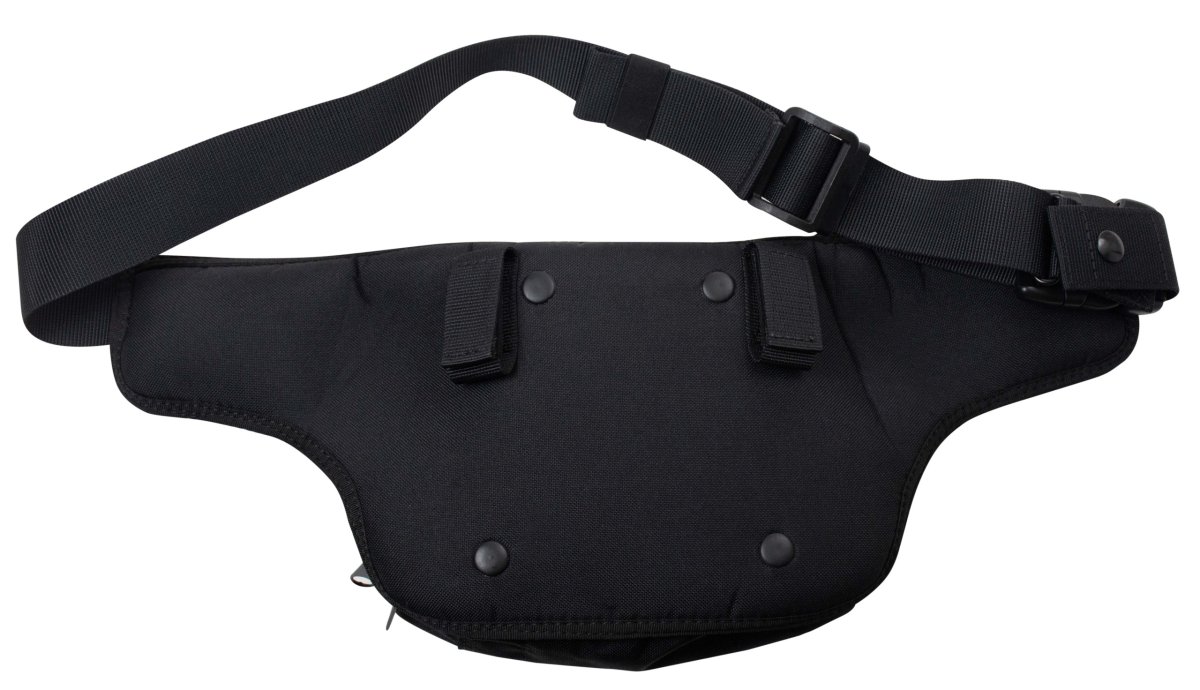 Marsupio extra large in Cordura con tasche laterali, tasca anteriore in rete con cerniera, porta caricatore interno in tessuto ed elastico, 2 lacci di sicurezza antiscippo sul dietro, fibbia a 3 punte di sicurezza + allacciatura supplementare in nastro e bottone mm.40 – predisposta per pannello interno con fondina in Polimero.