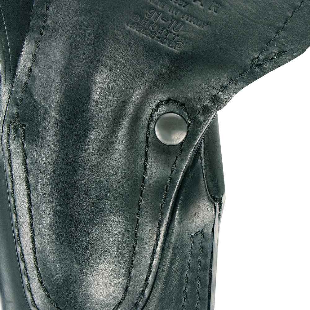 Fondina Duty realizzata in cuoio Premium Leather di alto spessore e di prima qualità, che assicura ottime performance in ogni condizione d’uso e nel tempo. Ottima vestibilità anche con il giubbetto antibalistico grazie alla sua anima semirigida che mantiene l’aderenza al corpo. Chiusura di sicurezza rinforzata. xolori: nero, granata, bianco compatibile per Beretta PX4 e Glock