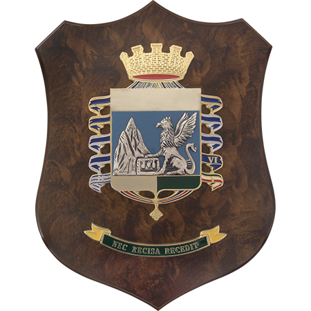 crest montato su base lignea con placca metallica smaltata logo araldico guardia di finanza