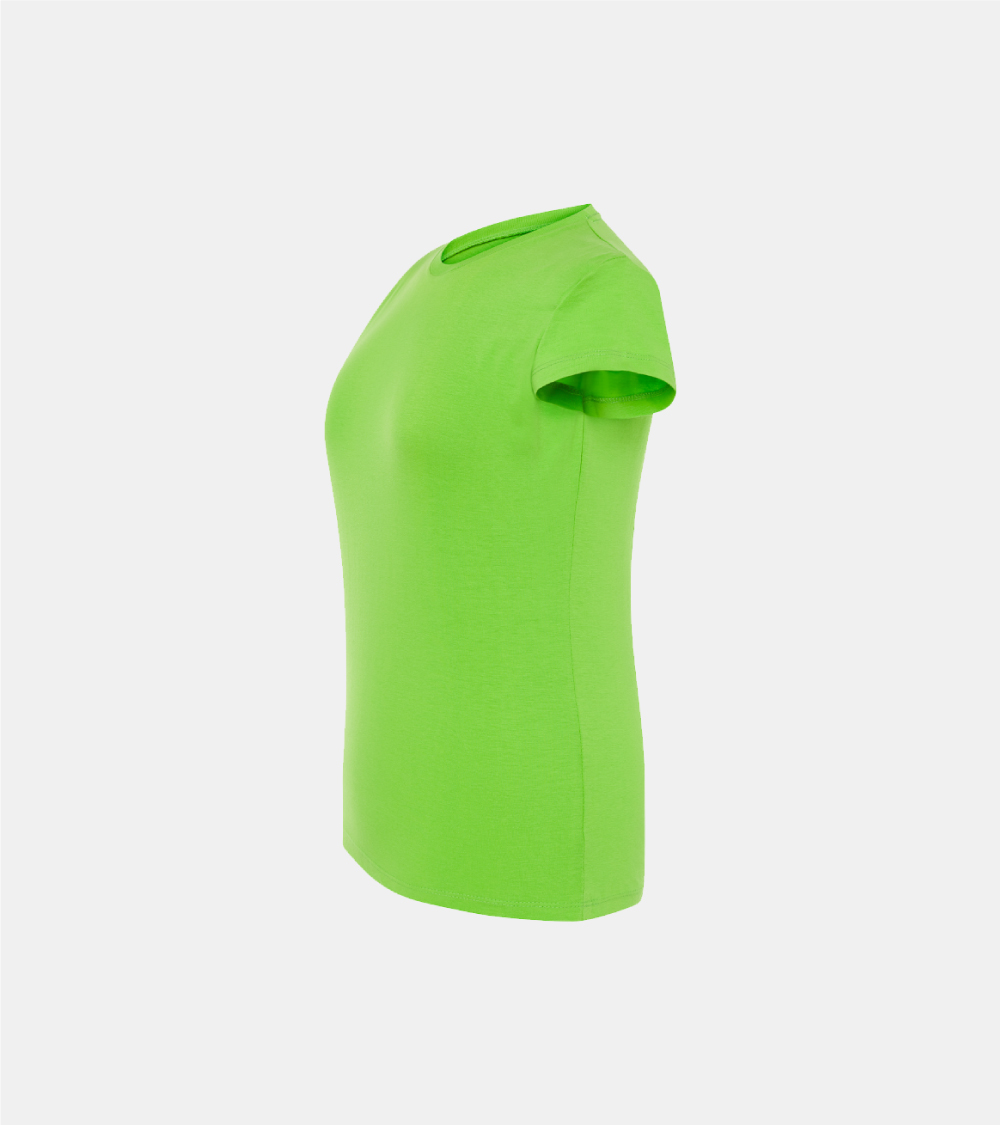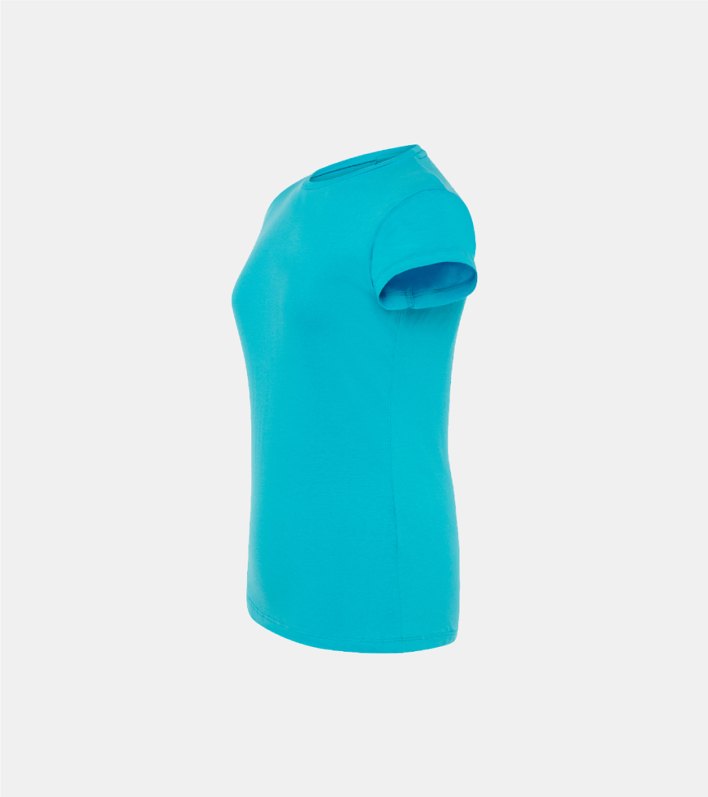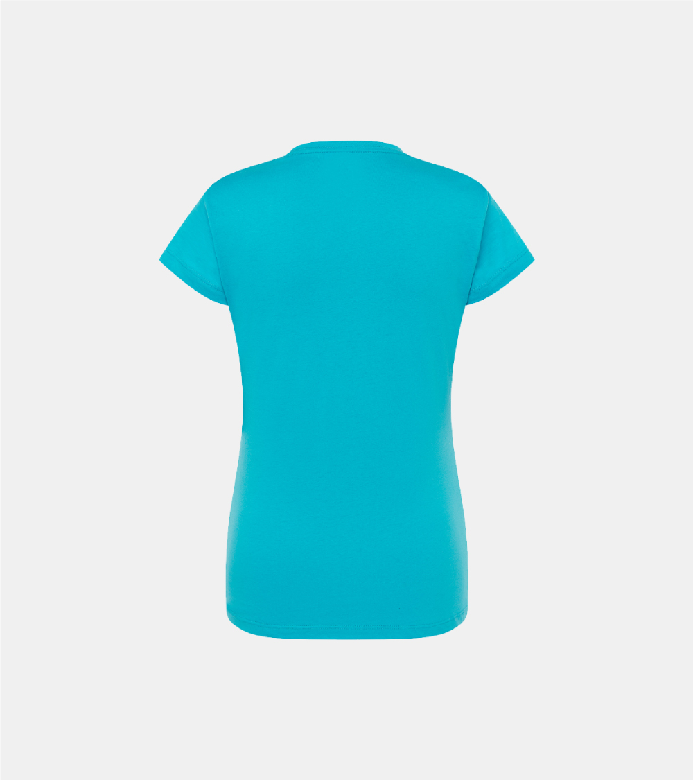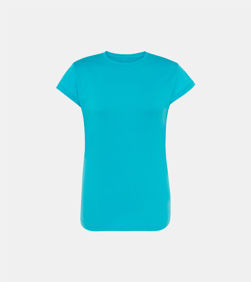 T-shirt basic per donna a maniche corte, 100% cotone. Ideale per personalizzare con serigrafia, vinile, trasferimento e stampa digitale. Disponibile anche per uomo, bambino e taglia grande (linea Curves), dalla taglia S alla XXL. Dettagli: Tagliata e cucita. Impuntura a doppio ago sul collo, spalle e orlo inferiore. Taglio sagomato, capo semi-attillato. Single Jersey. GM – 85% Cotone / 15% Viscosa Fluor – 100% Poliestere Heather – 65% Poliestere / 35% Cotone DNH – 60% Cotone / 40% Poliestere