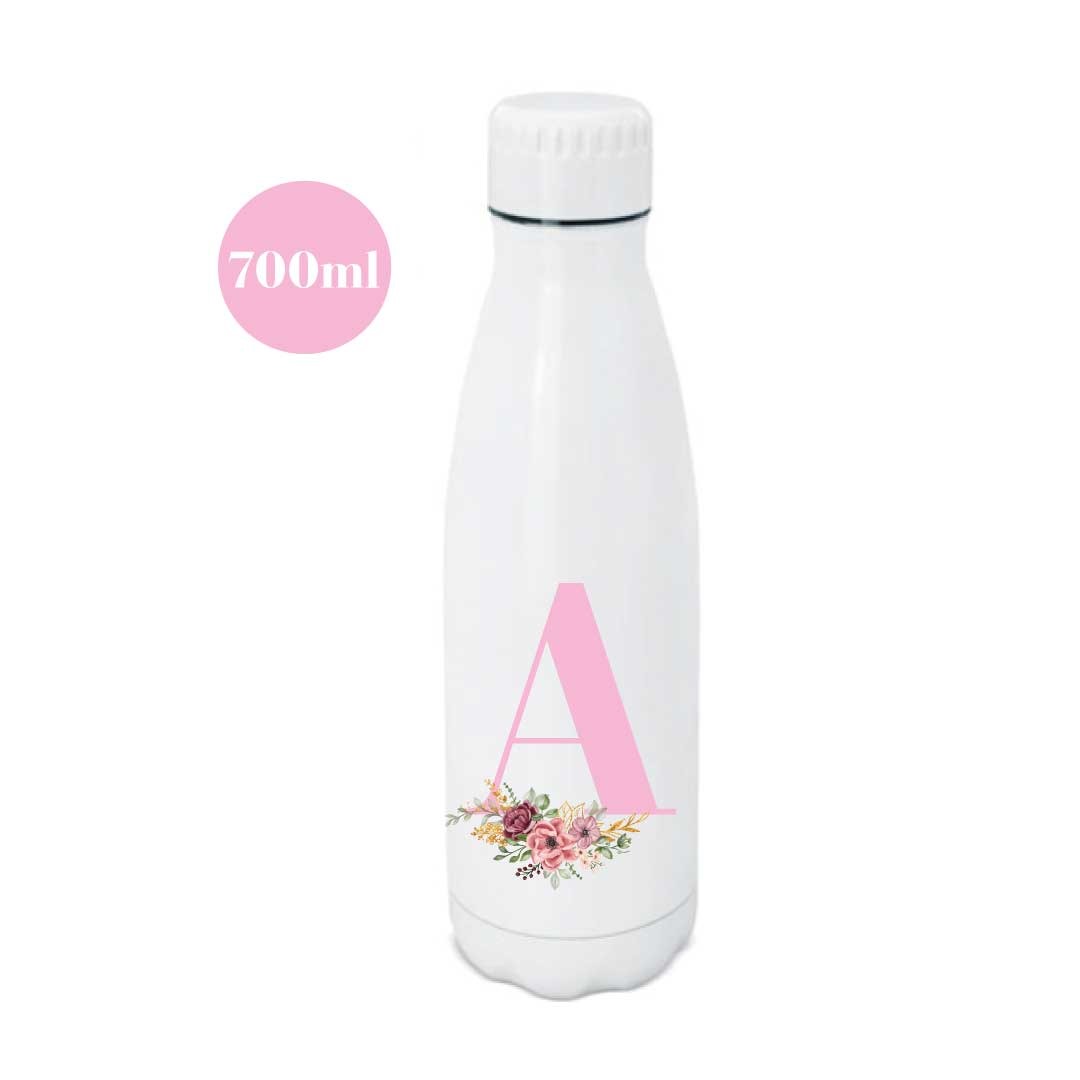 Borraccia In alluminio con la stampa della iniziale, Ottima idea regalo stampa frontale lettera A con motivo Floreale.