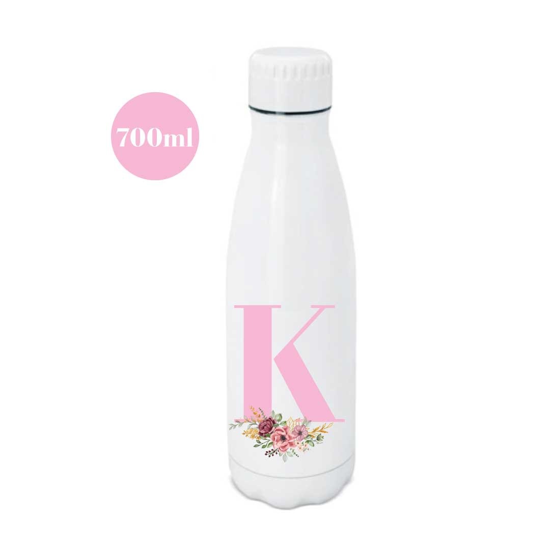 Borraccia In alluminio con la stampa della iniziale, Ottima idea regalo stampa frontale lettera L con motivo Floreale.