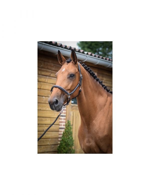 Cavezza Groomin jump’in collezione one In cuoio di qualità Realizzata per facilitare la toelettatura Fibbie in acciaio inossidabile Disponibile in nocciola o nero Misure: full e cob