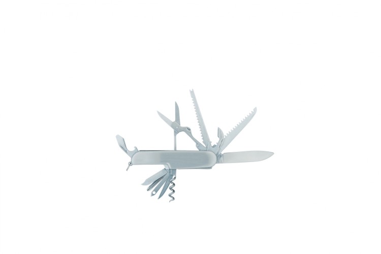 In acciaio inox, completo di custodia con asola per cintura. Coltello con lama di 6 cm.