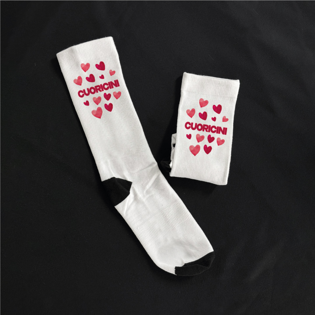Calzini Personalizzati con Frasi Iconiche e Immagini Simpatiche di Sanremo 2025 e altro : Cuoricini