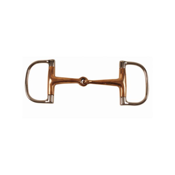 Filetto a “D”: snodato con imboccatura piena Materiale anello :acciaio inox Materiale imboccatura: rame Misure imboccatura: 12,5 – 13,5 – 14,5 cm spessore: 14 mm