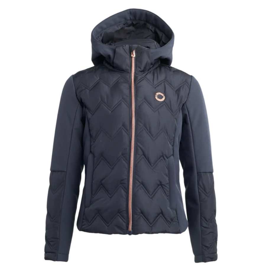 Aggiungi un po’ di brillantezza all’outfit da equitazione di tuo figlio con la giacca softshell isolante per ragazze KLstella! Questa giacca ibrida chic ma resistente sfoggia un cappuccio staccabile e offre un elegante mix di tessuto softshell e poliestere realizzato con trapuntatura a zigzag sul corpo e sulla parte inferiore della manica. Gli eleganti dettagli di design includono un logo Kingsland in metallo sul petto e un tirazip abbinato per quel tocco femminile. Realizzato in 100% poliestere.
