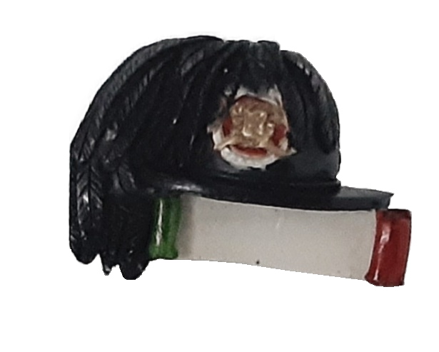 magnete da frigo smaltato raffigurante il classico copricapo bersaglieresco sopra una bandiera italiana