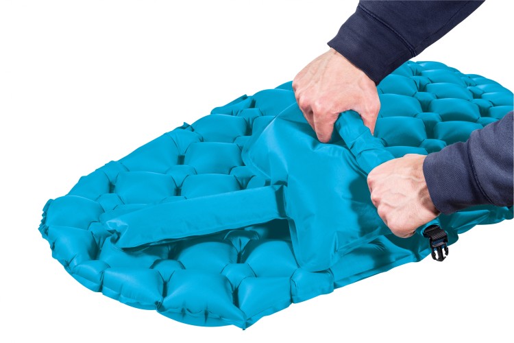 Materassino superleggero in nylon 20D. Custodia: Dry bag 33×8.5 cm. Kit di riparazione incluso.