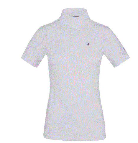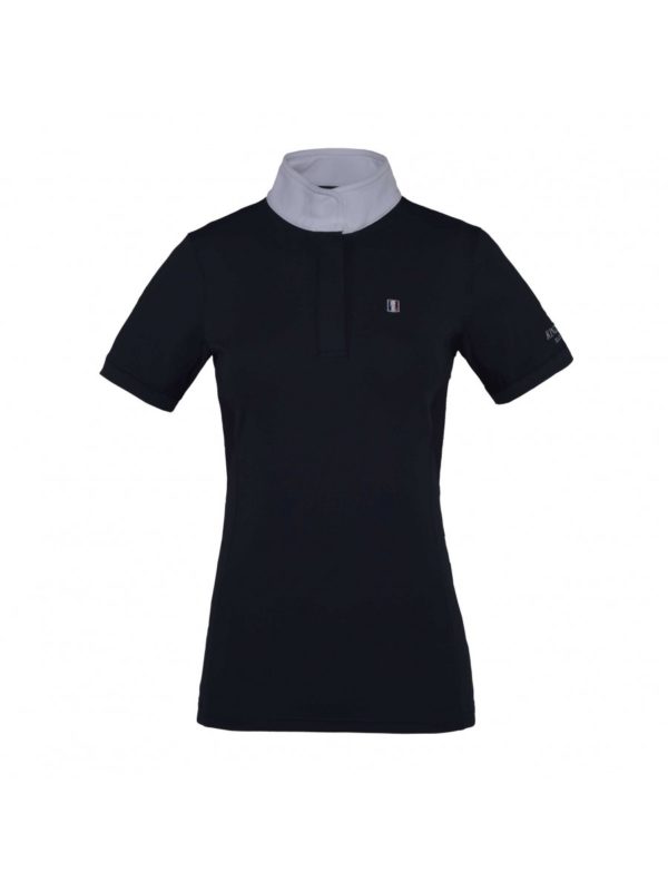Polo da concorso  a maniche corte per donna, colore blu navy e bianco. Ha una tenuta traspirante  permette un’asciugatura rapida. Sviluppata in tessuto tecnico con logo Kingsland sulla parte alta a sinistra.