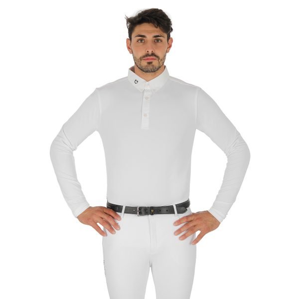 Polo uomo classica da competizione slim fit in tessuto tecnico traspirante. Maniche lunghe, chiusura a tre bottoni e colletto button down con logo Equestro.