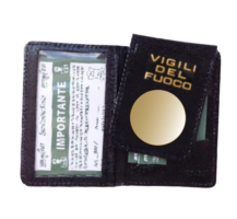 Portaplacca e portatessera in vera pelle dei vigili del fuoco