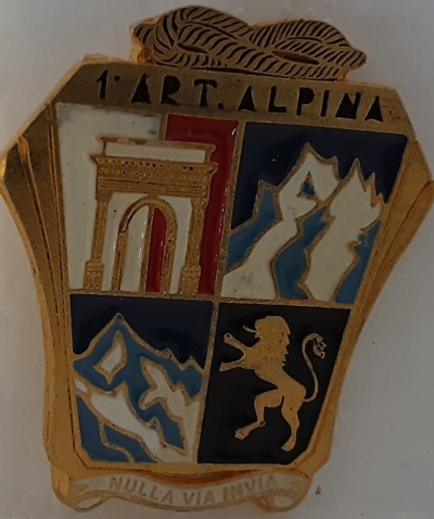 distintivo per cappello alpino con chiusura a spilla primo reggimento artiglieria da montagna