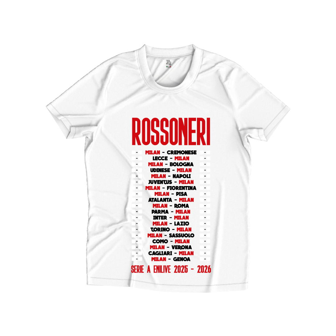 Ogni t-shirt riporta il calendario completo della stagione, con tutte le giornate del campionato già stampate.