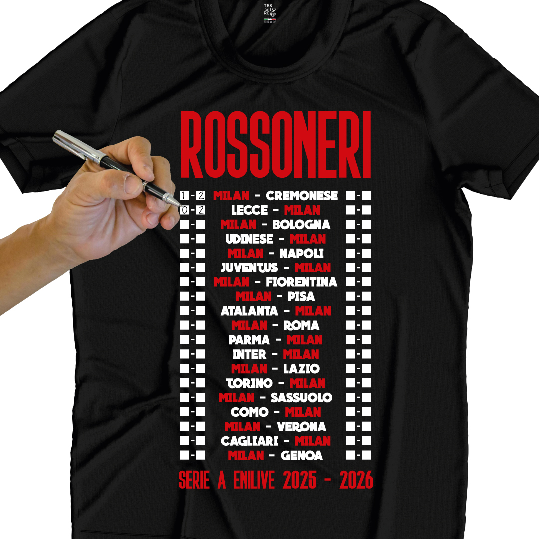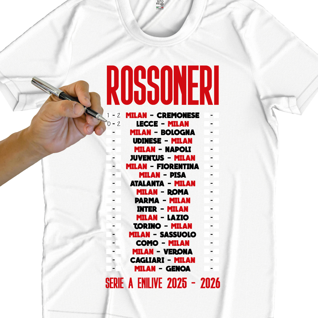 Disponibile per tutte le squadre della Serie A e della Serie B, ti permette di segnare a mano i risultati di ogni partita e creare un ricordo unico della tua squadra del cuore RossoNeri 25-26.