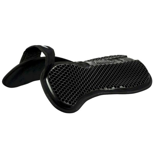 Salvagarrese aperto ACavallo in Gel e micripile. In taglia unica full, il gel soffice e massaggiante, può essere usato direttamente sulla schiena del cavallo, tra la schiena e il sottosella, o tra il sottosella e la sella. Il cuscinetto in gel ha un apertura apposita per lasciare libero il garrese, ed utilizza una struttura a celle esagonali. Non comprime il garrese, aiuta a prevenire problemi distribuendo il peso della sella e del cavaliere in modo uniforme. Il pad in gel esagonale antiscivolo, traspirante e antiurto è combinato con tessuto micropile e una schiuma interna a celle aperte di 4 mm di spessore. Fornisce massimo comfort alla schiena del cavallo mantenendo il contatto con la sella. Grazie alla innovativa struttura gel esagonale, l’aria viene compressa all’interno delle celle di questo cuscinetto antiscivolo e viene espulsa mentre il cavallo si muove, creando un cuscino sotto la sella. Questo modello è stato progettato appositamente per adattarsi a qualsiasi forma e dimensione delle selle inglesi.