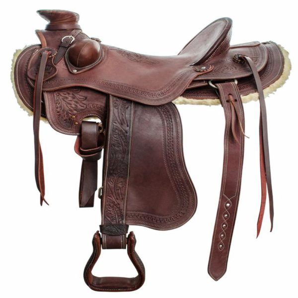 • Sella western Lakota modello ranch in cuoio oliato con lavorazione basket.