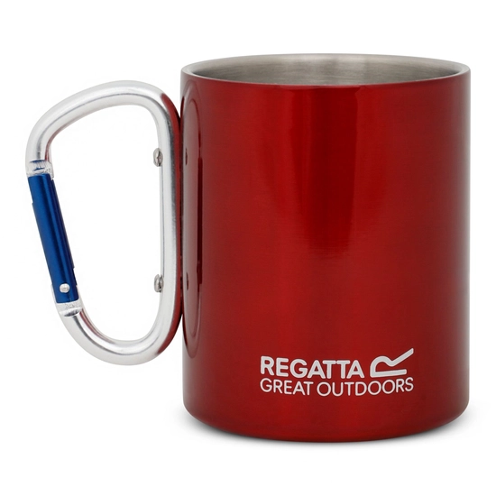Tazza in acciaio con manico a moschettone da fissare a zaini o borse da giorno.