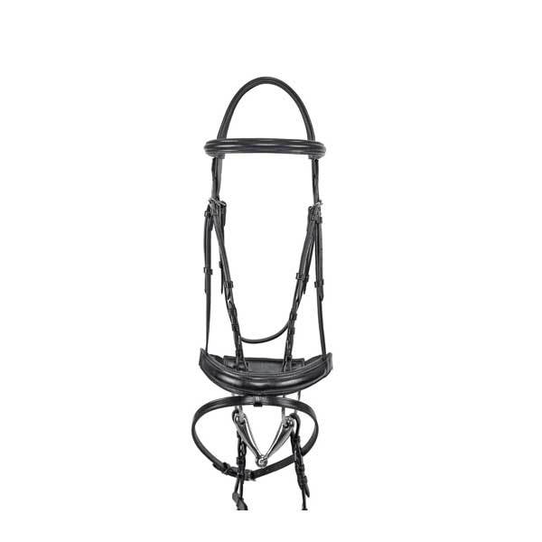 Briglia inglese Equestro Classic sagomata cuoio italiano, completa di redini in gomma, fibbie inox,Coprinuca sagomato e anatomico.