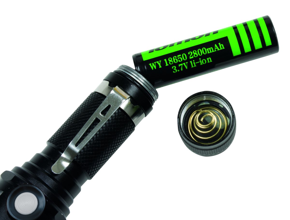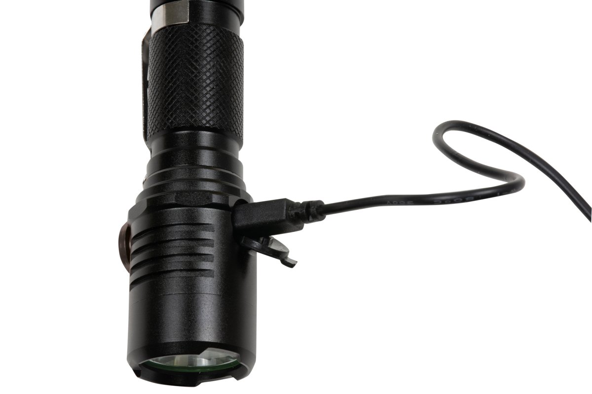 Torcia in lega di alluminuo 1200 lumen/500 mt – batterie a li-on ricaricabile con presa usb. Luce dimmerabile e con strobo.Impermeabile, IP55. Conforme CE e ROHS.